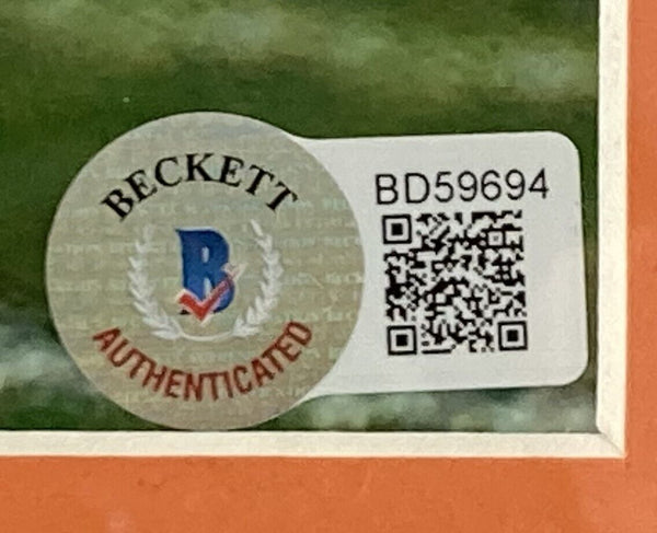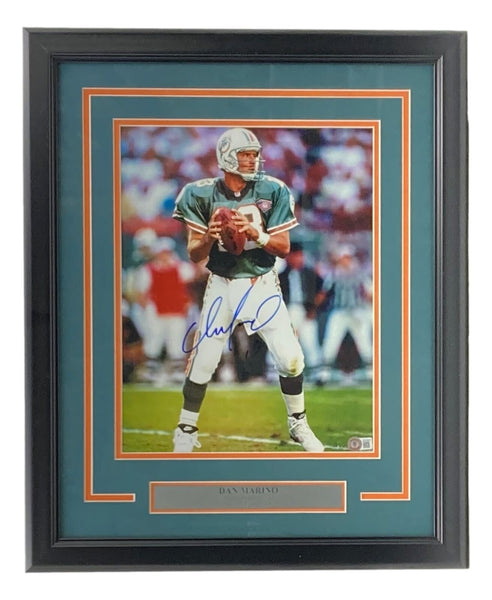 Featured is a Dan Marino signed 11x14 photo. This photo has been hand signed by Marino and comes with the Beckett hologram and certificate of authenticity. This photo has been professionally framed and matted and is approximately 16x20. This photo would make a great addition to any sports memorabilia collection! SPECIFICATIONS Autographed By: Team: Miami Dolphins Sport: Football Authentication: Beckett Grading Services