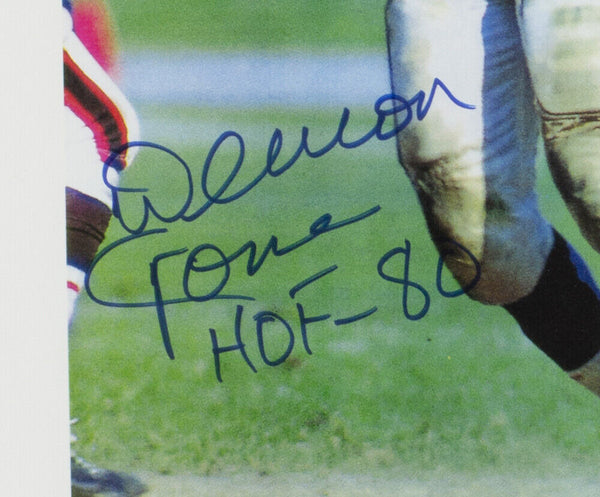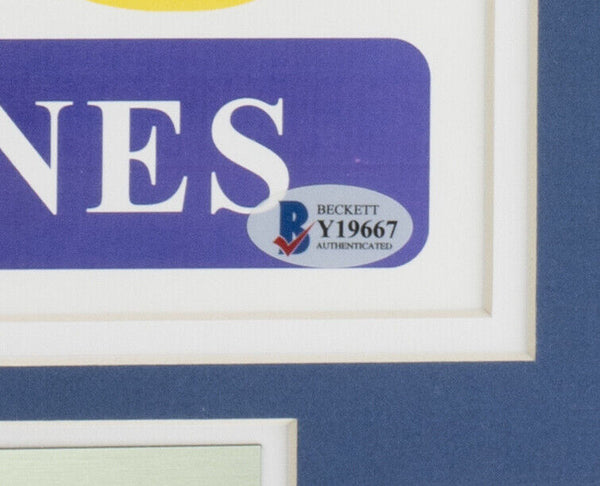 Featured is a Deacon Jones signed framed 11x17 Los Angeles Rams football photo, in which he added the "HOF 80" inscription. This photo was hand signed by Deacon Jones and authenticated by Beckett authentication services. Included with the photo is a Beckett hologram and certificate of authentication. Brand new professional framing featuring double matting and an engraved nameplate. The frame measures approximately 22x29 in total size, and it is ready for display. This item would make a great addition to any sports memorabilia collection. SPECIFICATIONS Autographed By: Deacon Jones Team: Los Angeles Rams Sport: Football Authentication: Beckett Grading Services