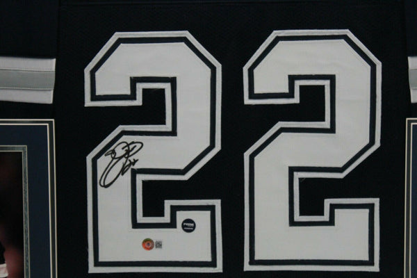 EMMITT SMITH AUTOGRAPHED & PROFESSIONALLY FRAMED PRO-STYLE JERSEY(Occasionally our own stock pictures are used at times due to quantity of framing, all frames will look identical as the one pictured)THE FRAMED JERSEY MEASURES 35"x 44" & COMES WITH THE FOLLOWING:-UV Protected Acrylic-Triple Acid Free Team Colored Matting-2 High Quality 8"x10" Photos-Team LogoEvery framed autographed jersey is accompanied with a tamper-proof hologram on the signed part of the jersey from one of the main authenticators in the industry (JSA, Beckett, PSA, etc.) and can be verified on their corresponding websites to prove authenticity.