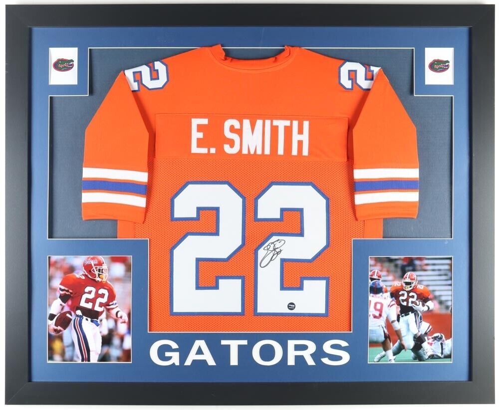 Custom 35x43 Framed on-field style jersey. Everything stitched on, size XL. Hand-signed by Emmitt Smith (Dallas Cowboys, Arizona Cardinals, HOF).The autograph includes an official Provo Authentic hologram for authenticity purposes. Authentication: Provo Hologram