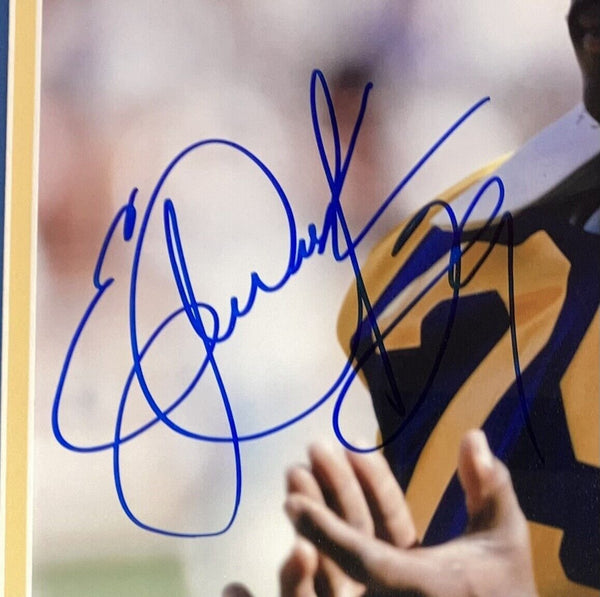 Featured is an Eric Dickerson signed 11x14 Los Angeles Rams photo. This photo has been hand signed by Dickerson and comes with the Beckett hologram and certificate of authenticity. This photo has been professionally framed and matted and is approximately 16x20. This photo would make a great addition to any sports memorabilia collection!. SPECIFICATIONS Autographed By: Eric Dickerson Team: Los Angeles Rams Sport: Football Authentication: Beckett Grading Services
