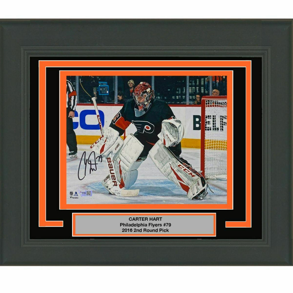 FRAMED Autographed/Signed CARTER HART Flyers 8x10 Hockey Photo Fanatics COA Auto The item is professionally framed & matted and is ready to be hung in your man cave! NOTE: COA card, if applicable, will be mounted on the back of the frame.