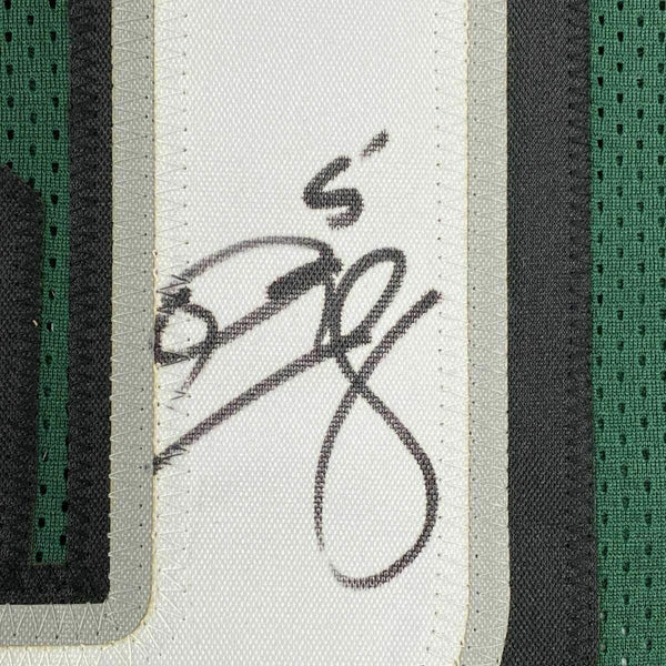 FRAMED Autographed/Signed DONOVAN MCNABB 33x42 Philadelphia Green Jersey BAS COA The item is professionally framed & matted with two 8x10 photos, measures 33"x42" and is ready to be hung in your man cave! NOTE: COA card will be mounted on the back of the frame, not inside it on top of the jersey as seen in the picture.