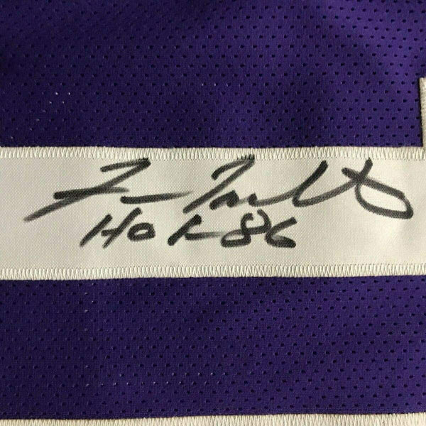 Framed Autographed/Signed Fran Tarkenton HOF 86 33x42 Purple Jersey JSA COA The item is professionally framed & matted with two 8x10 photos, measures 33"x42" and is ready to be hung in your man cave! NOTE: COA card will be mounted on the back of the frame, not inside it on top of the jersey as seen in the picture.
