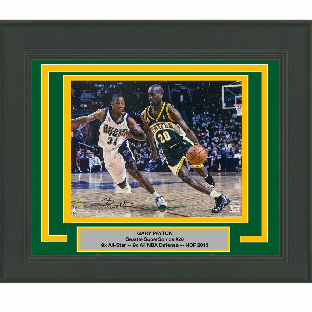 FRAMED Autographed/Signed GARY PAYTON Supersonics 16x20 Photo Fanatics COA Auto The item is professionally framed & matted and is ready to be hung in your man cave! NOTE: COA card, if applicable, will be mounted on the back of the frame. Please allow up to 5 business days for the item to be framed, packaged safely, and picked up by UPS. Nameplate and matting requests can be made.