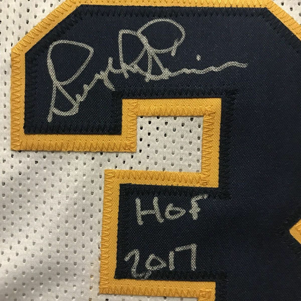 FRAMED Autographed/Signed GEORGE MCGINNIS 33x42 Indiana White Jersey JSA COA The item is professionally framed & matted with two 8x10 photos, measures 33"x42" and is ready to be hung in your man cave! NOTE: COA card will be mounted on the back of the frame, not inside it on top of the jersey as seen in the picture. Photo and matting requests can be made.