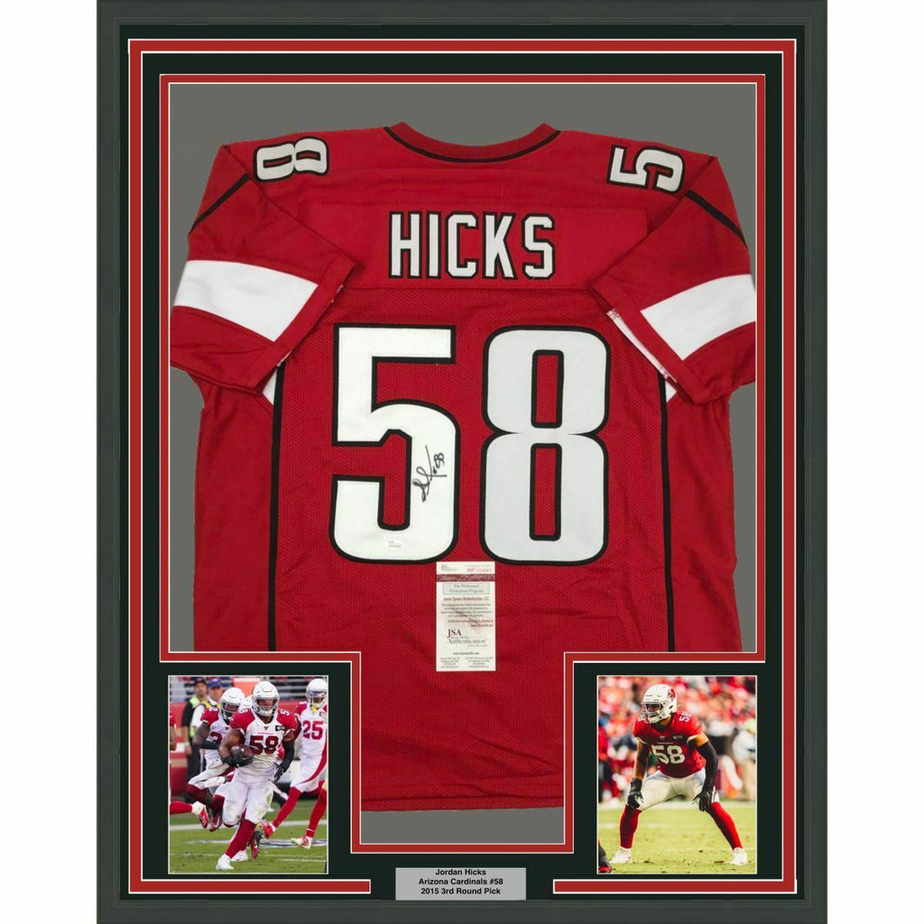 FRAMED Autographed/Signed JORDAN HICKS 33x42 Arizona Red Jersey JSA COA Auto The item is professionally framed & matted with two 8x10 photos, measures 33"x42" and is ready to be hung in your man cave! NOTE: COA card will be mounted on the back of the frame, not inside it on top of the jersey as seen in the picture. Please allow up to 5 business days for the item to be framed, packaged safely, and picked up by USPS. Photo and matting requests can be made.