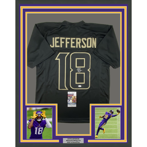FRAMED Autographed/Signed JUSTIN JEFFERSON 33x42 Minnesota Black Jersey JSA COA