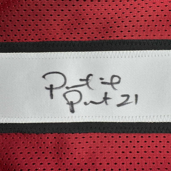 Framed Autographed/Signed Patrick Peterson 33x42 Arizona Red Jersey JSA COA The item is professionally framed and matted with two 5x7 photos, measures 35 inches by 39 inches and is ready to be hung in your man cave! Photo and matting requests can be made.