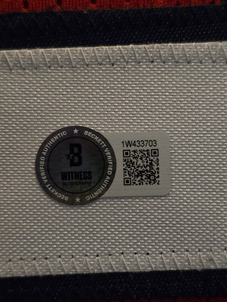 Custom Framed Nico Collins signed Houston Texans style custom jerseyBeckett HologramThe authentication is from Beckett. This signature is WITNESSED by a representative of Beckett! 100% AUTHENTIC!!! The jersey has fully stitched numbers on the front and back. It is a great item and a must for all great sports fans!This item is professionally framed, it measures 32"x40" inside , 42"x34" outside , using UV protective Acrylic glass for safe keeping and safe transport, team color matting, black moulding and hanging hooks on the back. All additional items in frame seen in pictures included. 100% ready to hang in your fan cave.