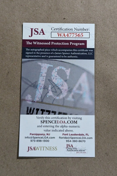 Custom Framed Daunte Culpepper hand signed Minnesota Vikings style custom jersey.JSA Hologram and COAThe authentication is from JSA. This signature is WITNESSED by a representative of JSA! 100% AUTHENTIC!!! The jersey has fully stitched numbers on the front and back. It is a great item and a must for all great sports fans!Stock photos are used for auctions. Will receive equal quality.This item is professionally framed, it measures 32"x40" inside , 42"x34" outside , using UV protective Acrylic glass for safe keeping and safe transport, team color matting, black moulding and hanging hooks on the back. All additional items in frame seen in pictures included. 100% ready to hang in your fan cave.