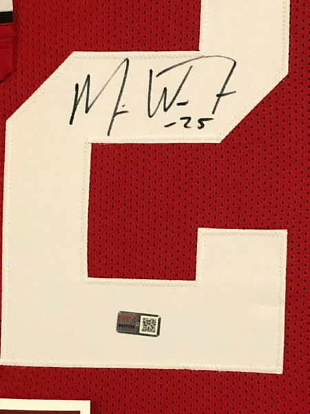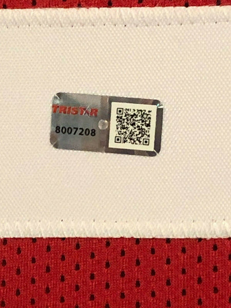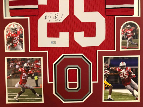 Custom Framed Mike Weber hand signed Ohio State Buckeyes jersey.TRISTAR HologramThe authentication is from TRISTAR. This signature is authenticated by a representative of TRISTAR! 100% AUTHENTIC!!! The jersey has fully stitched numbers on the front and back. It is a great item and a must for all great sports fans!This item is professionally framed, it measures 32"x40" inside , 42"x34" outside , using UV protective Acrylic glass for safe keeping and safe transport, team color matting, black moulding and hanging hooks on the back. All additional items in frame seen in pictures included. 100% ready to hang in your fan cave.