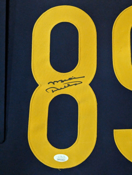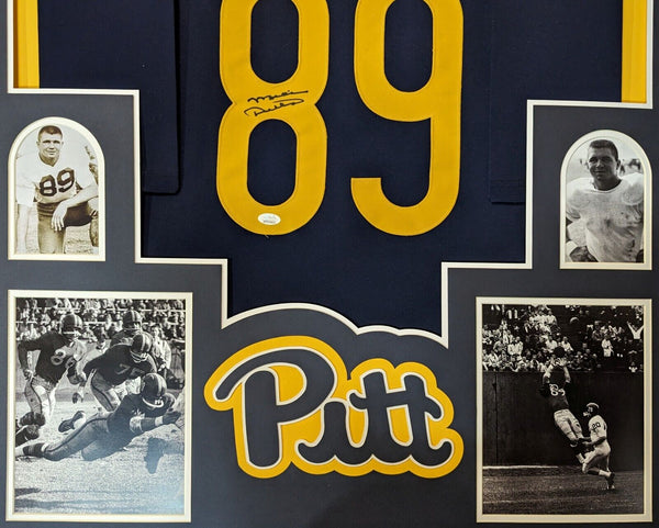 Custom Framed Mike Ditka hand PITT Panthers style custom jersey. JSA Hologram and COA The authentication is from JSA. This signature is authenticated by a representative of JSA! 100% AUTHENTIC!!! The jersey has fully stitched numbers on the front and back. It is a great item and a must for all great sports fans! This item is professionally framed, it measures 32"x40" inside , 42"x34" outside , using UV protective Acrylic glass for safe keeping and safe transport, team color matting, black moulding and hanging hooks on the back. All additional items in frame seen in pictures included. 100% ready to hang in your fan cave.