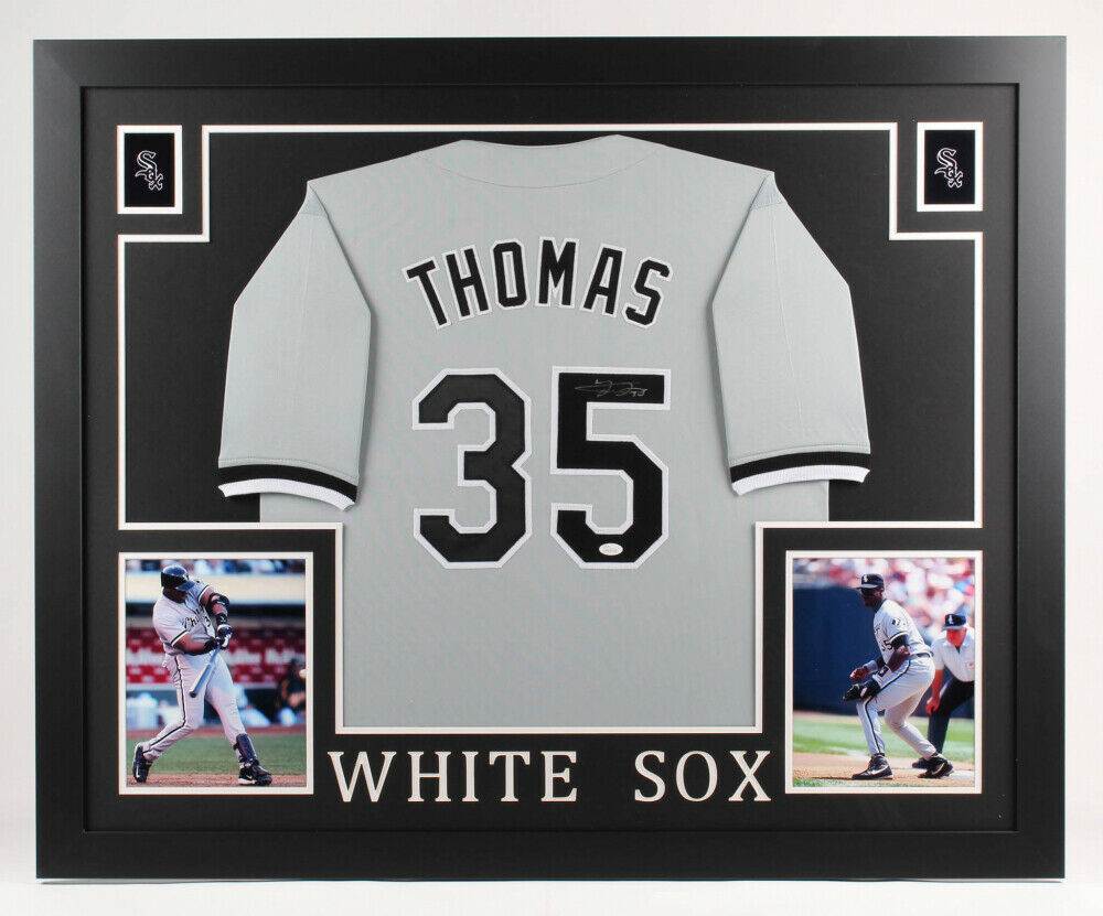 Frank Thomas Signed White Sox 35x43 Framed Road Jersey (JSA COA) 2XAL MVP