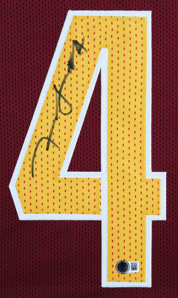 This Autographed Maroon Pro Style Framed Jersey has been Personally Signed by Frankie Luvu of the Washington Commanders. This item is 100% Authentic to include a hologram by Beckett Authentication Services. This item will come with an affixed Beckett Authentication Services (BAS) authentication sticker, which includes a scannable QR code to verify authenticity. Please note that Beckett no longer provides serial-numbered COA cards, and the attached BAS sticker will serve as the complete authentication for this item. This is a BAS Witnessed Protection Program item which means a Beckett Authentication Service representative was present when this item was being signed. We conducted an autograph signing with Frankie Luvu where multiples of the same item were signed. While the photographs are representative of this item, the size, placement and strength of the signature may vary. Each item is hand signed, therefore, each autograph is unique. This item can be verified through BAS Witnessed. This item has been professionally framed to overall dimensions of approximately 32 x 37 inches. This is a X-Large sized, non-branded, custom-stitched Framed Jersey. This jersey will be framed to order, it will take approximately 3-4 business days from purchase date for it to ship.