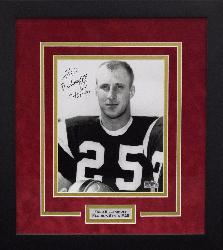 FRED BILETNIKOFF SIGNED FLORIDA STATE SEMINOLES 8x10 FRAMED PHOTO W/ CHOF 91