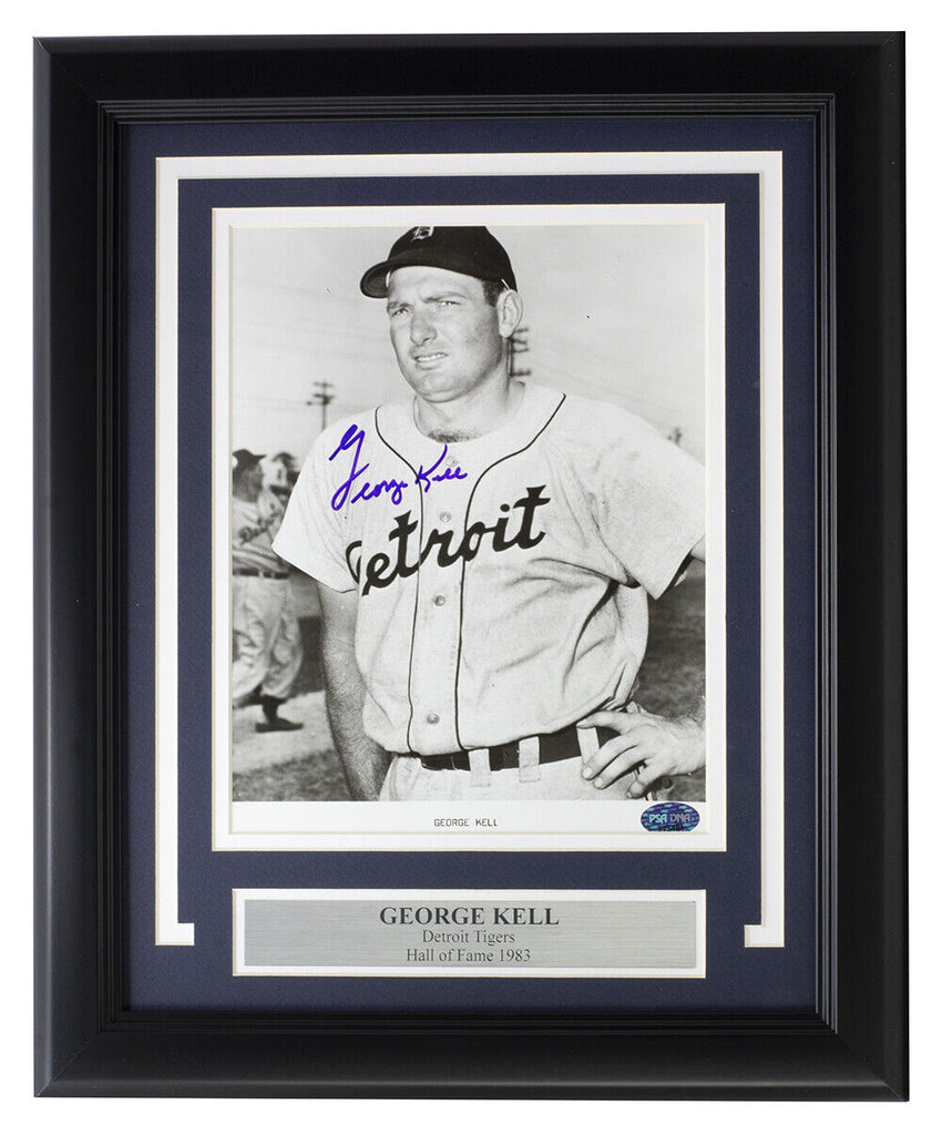 Featured is a George Kell signed framed Detroit Tigers 8x10 baseball photo. This photo was hand signed by George Kell and has been authenticated by PSA/DNA authentication services. Included with the photo is a PSA/DNA hologram and certificate of authenticity. Professionally framed and matted. Measures approximately 11x14 inches in total size, ready for display.. SPECIFICATIONS Autographed By: George Kell Team: Detroit Tigers Sport: Baseball Authentication: Professional Sports Authenticator (PSA)