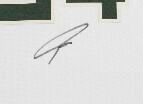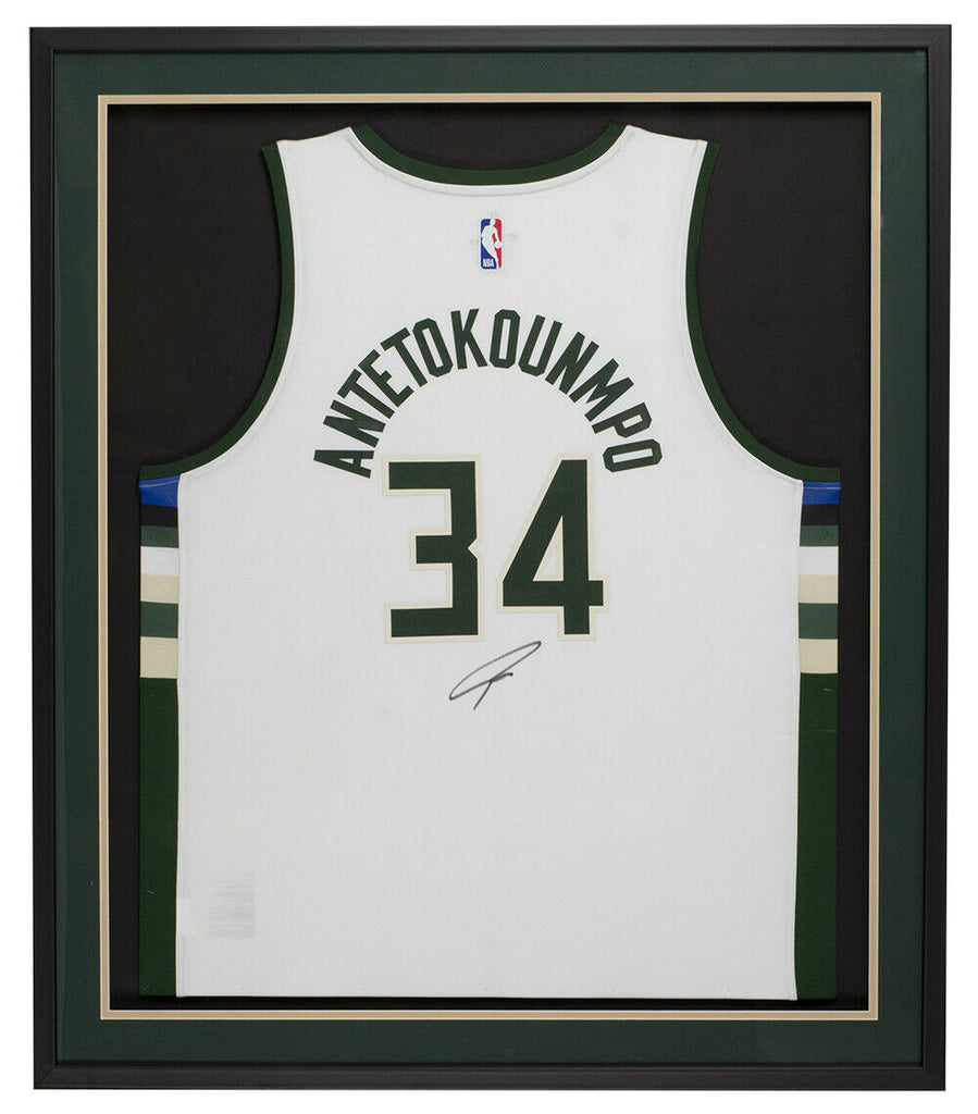 Featured is a Giannis Antetokounmpo signed framed white Milwaukee Bucks authentic basketball jersey. This jersey was hand signed by Giannis Antetokounmpo and has been authenticated by Beckett authentication services. Included with the jersey is a Beckett hologram and certificate of authentication. The jersey is professionally framed and matted, measures approximately 32x36. Brand new professional framing and ready to display! This item would make a great addition to any sports memorabilia collection!. SPECIFICATIONS Autographed By: Giannis Antetokounmpo Team: Milwaukee Bucks Sport: Basketball Authentication: Beckett Grading Services