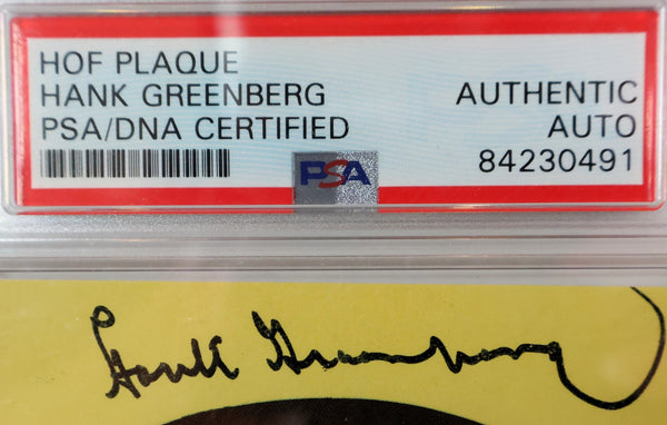 Hank Greenberg Autographed Mini Plaque and Photo - Baseball Hall of Fame Legend Celebrate a baseball legend with this Hank Greenberg autographed mini plaque and photo, beautifully framed and authenticated by PSA/JSA. This premium display piece showcases one of baseball's greatest stars and adds a touch of history and prestige to any collection or room. Product Highlights: Authentic Signature: Hand-signed by Hall of Fame legend Hank Greenberg Complete Set: Includes autographed mini plaque and complementary photo Professional Framing: 8.5x16 framed size - ready for display Dual Authentication: PSA/JSA COA guarantees authenticity Investment Grade: Perfect for serious collectors and investors Display Ready: Arrives ready to hang and showcase About Hank Greenberg: Hank Greenberg, "Hammerin' Hank," was one of baseball's most powerful hitters and a Detroit Tigers icon. A Hall of Fame first baseman and outfielder, Greenberg was a two-time MVP and four-time home run champion who helped lead the Tigers to four American League pennants and two World Series titles. As one of the first Jewish superstars in Major League Baseball, he broke barriers and became a symbol of perseverance and excellence. Perfect For: Baseball memorabilia collectors Detroit Tigers fans Hall of Fame enthusiasts Baseball history lovers Investment portfolio addition Gift for sports heritage fans Frame Specifications: 8.5x16 inches framed | Professional framing | Ready to hang | UV-protected glass Perfect for collectors and fans, this authenticated Hank Greenberg collectible represents more than just a signature - it's a connection to baseball's golden era and one of the sport's most influential players. Secure your piece of sports heritage today.