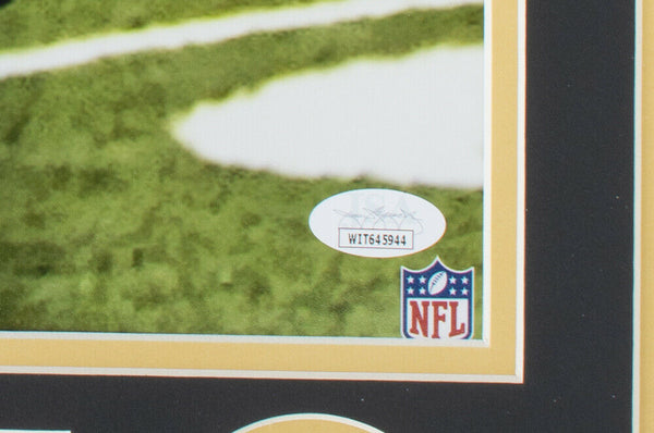 Featured is a Hines Ward signed framed 16x20 Pittsburgh Steelers photo. This photo was hand signed by Hines Ward in the presence of a JSA authentication representative. Included with the photo is a JSA hologram and certificate of authentication. This photo has been professionally framed and matted and measures approximately 22x27. SPECIFICATIONS Autographed By: Hines Ward Team: Pittsburgh Steelers Sport: Football Authentication: Professional Sports Authenticator (PSA)