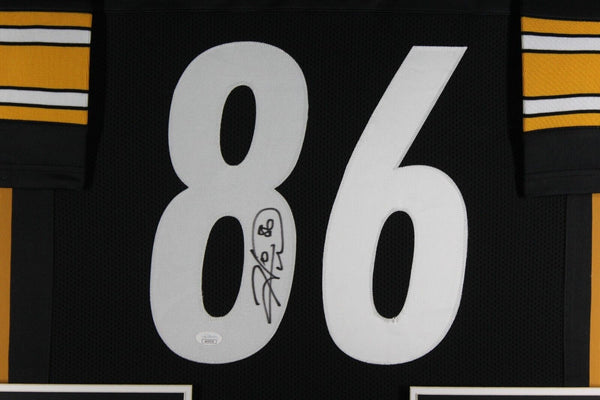 HINES WARD AUTOGRAPHED & PROFESSIONALLY FRAMED PRO-STYLE JERSEY(Occasionally our own stock pictures are used at times due to quantity of framing, all frames will look identical as the one pictured)THE FRAMED JERSEY MEASURES 35"x 44" & COMES WITH THE FOLLOWING:-UV Protected Acrylic-Triple Acid Free Team Colored Matting-2 High Quality 8"x10" Photos-Team LogoEvery framed autographed jersey is accompanied with a tamper-proof hologram on the signed part of the jersey from one of the main authenticators in the industry (JSA, Beckett, PSA, etc.) and can be verified on their corresponding websites to prove authenticity.