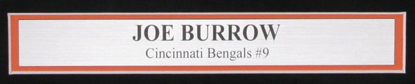 Joe Burrow Autographed 16x20 Photo Cincinnati Bengals Framed. The outer frame size is 22 inches x 29 inches. This photo is authenticated by Fanatics Authentic and includes their Tamper-proof Hologram Sticker and Certificate of Authenticity.