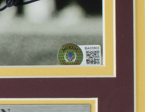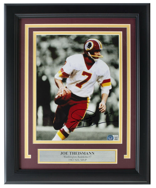 Featured is a Joe Theismann signed and framed 8x10 photo Washington Football Team photo. This photo was hand signed by Joe Theismann and has been authenticated by Beckett authentication services. Included with the photo is a Beckett hologram and certificate of authentication Brand new professional framing featuring double matting and engraved nameplate. The frame measures approximately 14x11 in total size, and it is ready for display. This item would make a great addition to any sports memorabilia collection. SPECIFICATIONS Autographed By: Joe Theismann Team: Washington Football Team Sport: Football-NFL Authentication: Beckett Grading Services