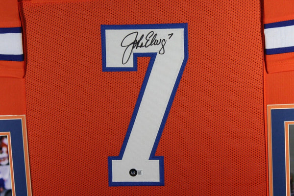 JOHN ELWAY (Broncos orange SKYLINE) Signed Autograph Framed Jersey Beckett