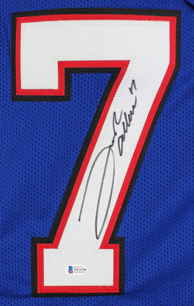 This Autographed Blue Pro Style Framed Jersey has been signed by Josh Allen of the Buffalo Bills. This item is 100% Authentic to include a hologram by Beckett Authentication Services. This item may come with the new Beckett Authentication hologram that has a scannable QR code rather than the traditional COA. If you would like to have a COA, you are welcome to reach out to Beckett for a printed certification once you receive your item. This is a BAS Witnessed Protection Program item which means a Beckett Authentication Service representative was present when this item was being signed. We conducted an autograph signing with Josh Allen where multiples of the same item were signed. While the photographs are representative of this item, the size, placement and strength of the signature may vary. Each item is hand signed, therefore, each autograph is unique. This has been professionally framed to approximately 32x37 inches. This item can be verified through BAS Witnessed. This jersey will be framed to order and may take 3-4 business days to ship after the order has been placed.