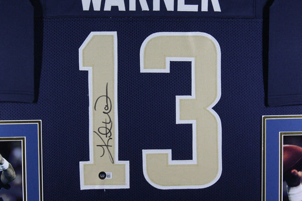 KURT WARNER (Rams navy SKYLINE) Signed Autographed Framed Jersey Beckett