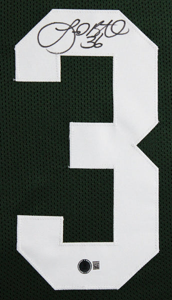 This Autographed Green Pro Style Framed Jersey has been Personally Signed by LeRoy Butler of the Green Bay Packers. This item is 100% Authentic to include a hologram by Beckett Authentication Services. This item will come with an affixed Beckett Authentication Services (BAS) authentication sticker, which includes a scannable QR code to verify authenticity. Please note that Beckett no longer provides serial-numbered COA cards, and the attached BAS sticker will serve as the complete authentication for this item. This is a BAS Witnessed Protection Program item which means a Beckett Authentication Service representative was present when this item was being signed. We conducted an autograph signing with LeRoy Butler where multiples of the same item were signed. While the photographs are representative of this item, the size, placement and strength of the signature may vary. Each item is hand signed, therefore, each autograph is unique. This item can be verified through BAS Witnessed. This item has been professionally framed to overall dimensions of approximately 32 x 37 inches. This is a X-Large sized, non-branded, custom-stitched Framed Jersey. This jersey will be framed to order, it will take approximately 3-4 business days from purchase date for it to ship.