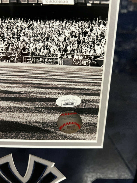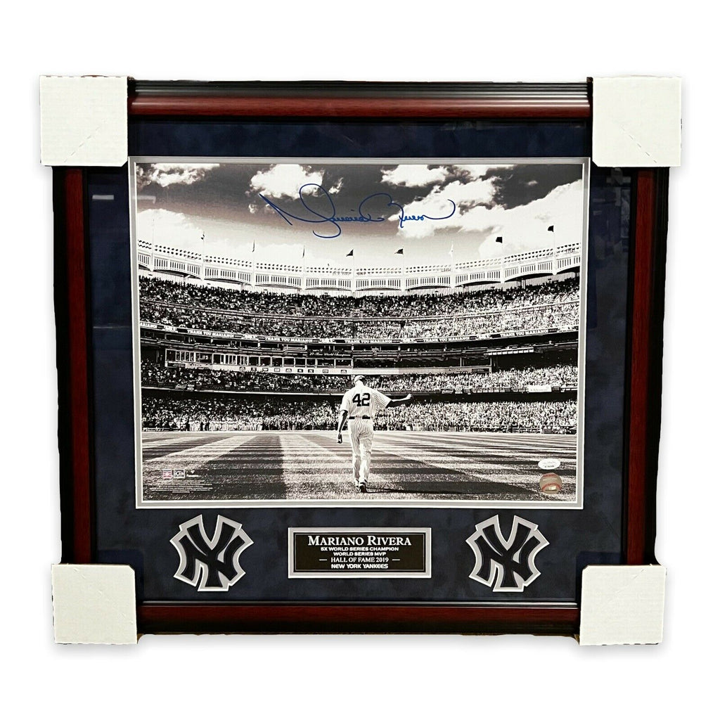 This 16x20 photograph custom framed to 20x24 has been personally hand-signed by Mariano Rivera & of the New York Yankees100% Authentic Certificate of Authenticity by JSAExact location of signature may vary