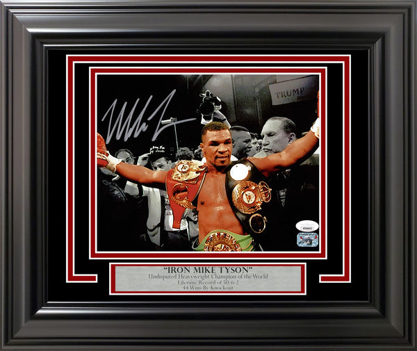 This is a Framed 8x10 Photo, approximately 15x18 with the frame, that has been hand signed by Mike Tyson. This item has been witnessed and certified authentic by JSA and comes with their tamper-proof hologram.