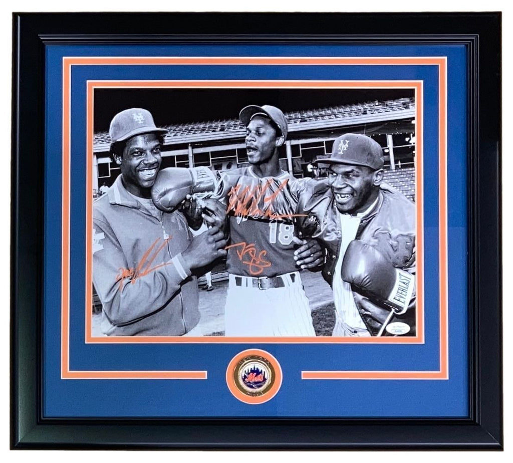 Featured is a Mike Tyson, Doc Gooden and Darryl Strawberry signed 11x14 photo. This photo has been hand signed by Tyson, Gooden and Strawberry and comes with the JSA hologram and certificate of authenticity. This photo has been professionally framed and matted and is approximately 16x20. This photo would make a great addition to any sports memorabilia collection!. SPECIFICATIONS Autographed By: Team: New York Mets Sport: Baseball Authentication: James Spence Authentication (JSA)