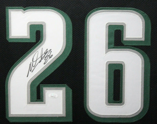 MILES SANDERS AUTOGRAPHED & PROFESSIONALLY FRAMED PRO-STYLE JERSEY(Occasionally our own stock pictures are used at times due to quantity of framing, all frames will look identical as the one pictured)THE FRAMED JERSEY MEASURES 35"x 44" & COMES WITH THE FOLLOWING:-UV Protected Acrylic-Triple Acid Free Team Colored Matting-2 High Quality 8"x10" Photos-Team LogoEvery framed autographed jersey is accompanied with a tamper-proof hologram on the signed part of the jersey from one of the main authenticators in the industry (JSA, Beckett, PSA, etc.) and can be verified on their corresponding websites to prove authenticity.