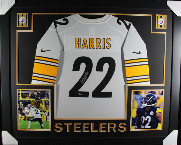 Najee Harris Autographed/Signed Framed Pro Style White XL Jersey FAN 38045 The number in the listing title is just an inventory sku for our records and is not the authentication number. The item pictured is a stock photo unless otherwise noted. This is a professionally framed white Nike XL jersey that was personally autographed by Najee Harris. This jersey measures approximately 42" x 34" and includes a Fanatics Authentic hologram and a certificate of authenticity from Denver Autographs.