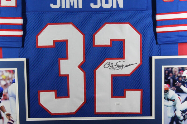 OJ SIMPSON AUTOGRAPHED & PROFESSIONALLY FRAMED PRO-STYLE JERSEY(Occasionally our own stock pictures are used at times due to quantity of framing, all frames will look identical as the one pictured)THE FRAMED JERSEY MEASURES 35"x 44" & COMES WITH THE FOLLOWING:-UV Protected Acrylic-Triple Acid Free Team Colored Matting-2 High Quality 8"x10" Photos-Team LogoEvery framed autographed jersey is accompanied with a tamper-proof hologram on the signed part of the jersey from one of the main authenticators in the industry (JSA, Beckett, PSA, etc.) and can be verified on their corresponding websites to prove authenticity.
