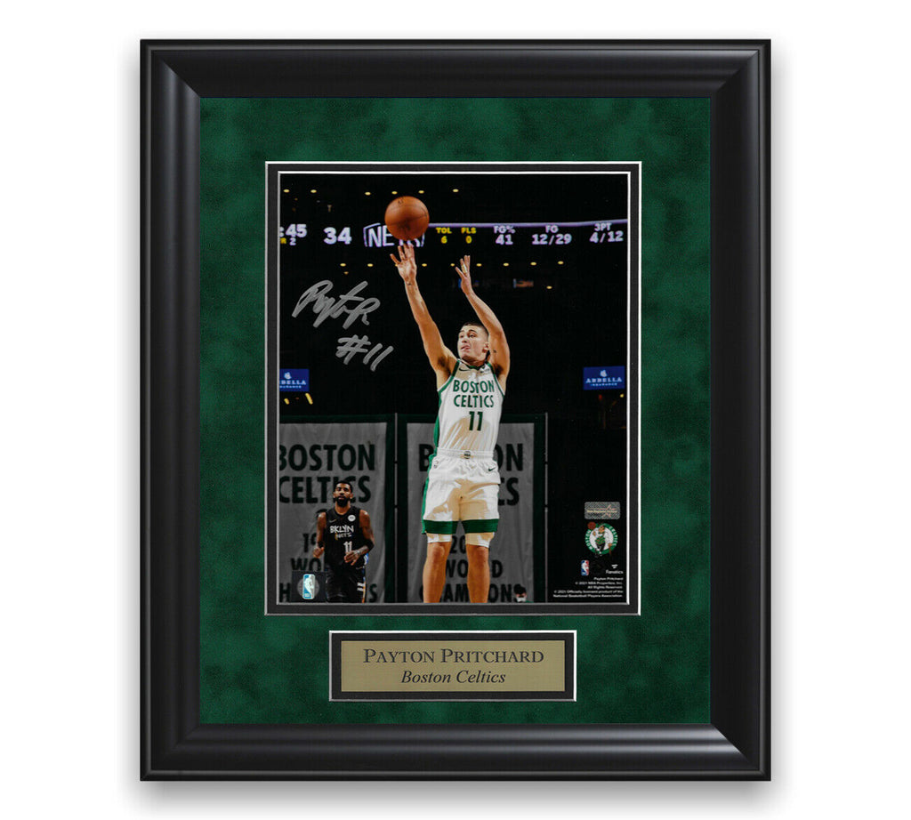 This photo custom framed to 11x14 has been personally hand signed by Payton Pritchard of the Boston Celtics100% authenticCertificate of authenticity by New England Picture Exact location of signature may vary