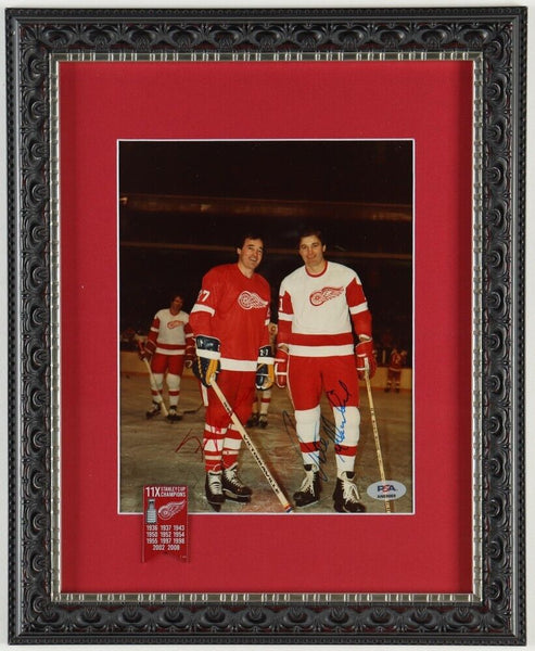 Pete Delvecchio & Frank Maholovich Signed Red Wings 13x16 Framed Photo (PSA)