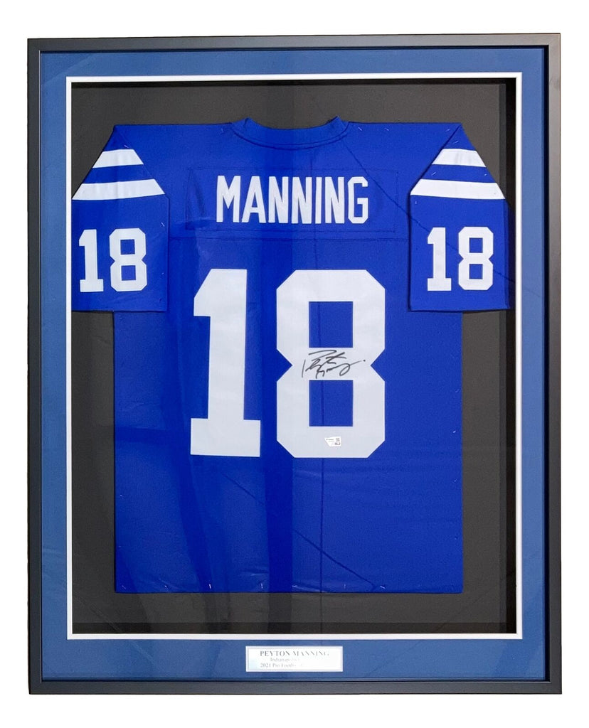 Featured is a Peyton Manning signed Indianapolis Colts Mitchell & Ness football jersey. This jersey was hand signed by Manning and comes with the Fanatics hologram and certificate of authenticity. This jersey is size XL. This jersey has been professionally framed and matted and is approximately 32x42. This jersey would make a great addition to any sports memorabilia collection.. SPECIFICATIONS Autographed By: Peyton Manning Team: Indianapolis Colts Sport: Football Authentication: Fanatics Authentic