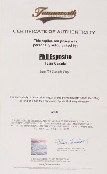 Phil Esposito Signed Team Canada Jersey Inscribed "76 Canada Cup" (Frameworth)