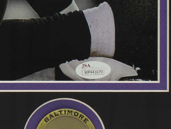 Featured is a Ray Lewis Baltimore Ravens signed framed 16x20 spotlight photo. This photo was hand signed by Ray Lewis in the presence of JSA authentication representatives. Included with the photo is a JSA witnessed hologram and certificate of authentication. Brand new professional framing featuring double matting and engraved nameplate. The frame measures approximately 22x27 in total size, and it is ready for display. This item would make a great additional to any sports memorabilia collection. Product Details BrandSports IntegrityManufacturerSports IntegrityProduct TypeFootball/Signed MemorabiliaMpn34102