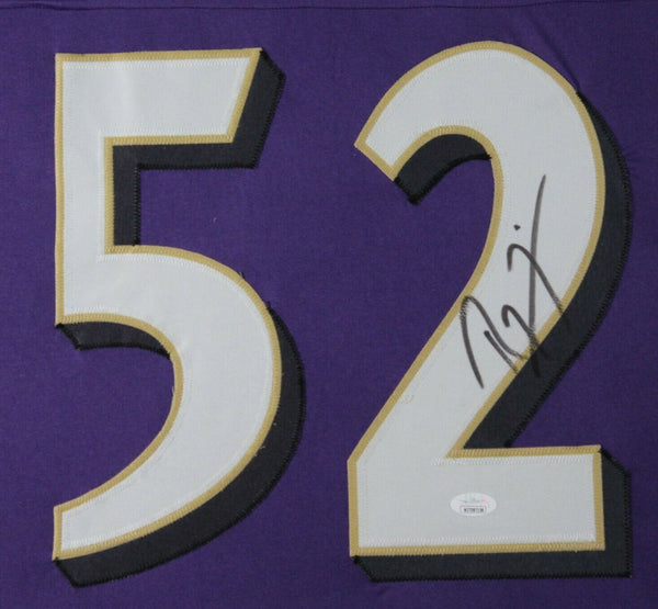 RAY LEWIS AUTOGRAPHED & PROFESSIONALLY FRAMED PRO-STYLE JERSEY(Occasionally our own stock pictures are used at times due to quantity of framing, all frames will look identical as the one pictured)THE FRAMED JERSEY MEASURES 35"x 44" & COMES WITH THE FOLLOWING:-UV Protected Acrylic-Triple Acid Free Team Colored Matting-2 High Quality 8"x10" Photos-Team LogoEvery framed autographed jersey is accompanied with a tamper-proof hologram on the signed part of the jersey from one of the main authenticators in the industry (JSA, Beckett, PSA, etc.) and can be verified on their corresponding websites to prove authenticity.