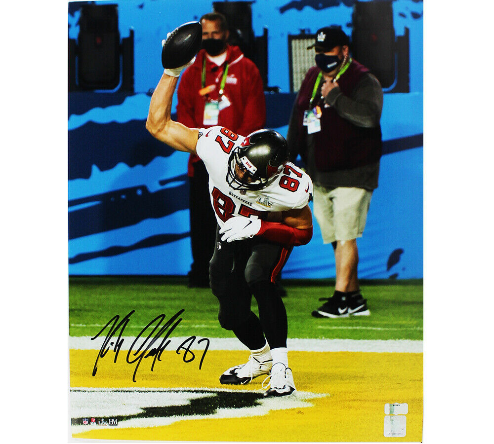 A Tampa Bay Buccaneers Unframed 16x20 NFL Photo - Super Bowl Spike hand signed by Rob Gronkowski. The item and signature are in excellent condition. Rob is a 5x All-Pro First Team, 5x Pro Bowler, and 2x Super Bowl Champion. AUTHENTICATION: The item is accompanied by a Certificate of Authenticity - Serial Numbered & Databased Hologram - Picture of Rob from the signing