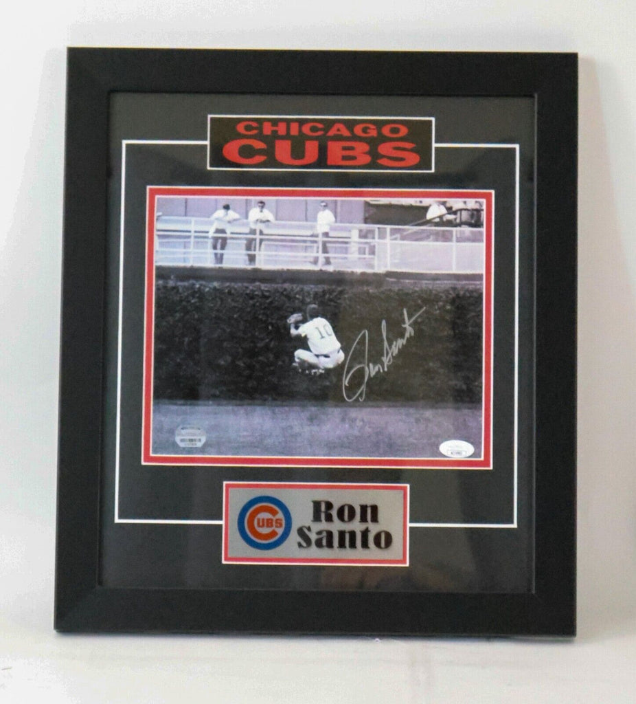 This autographed 8"x10" framed photo of Ron Santo, a former Chicago Cubs player and Hall of Famer, is a must-have for any baseball fan. The photo is an original and comes with authentication from James Spence Authentication (JSA), ensuring that the signature is genuine.