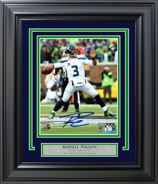 This is a Framed 8x10 Photo, approximately 15x18 with the frame, that has been hand signed by Russell Wilson. This item has the official tamper-proof Russell Wilson hologram and matching certificate of authenticity.