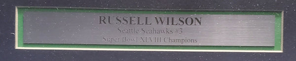 This is a framed 16x20 Photo, approximately 24x28 with the frame, that has been hand signed by Russell Wilson. This item has the official tamper-proof Russell Wilson serial numbered hologram and matching certificate of authenticity.