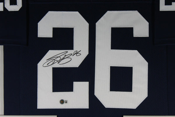 SAQUON BARKLEY (Penn State blue TOWER) Signed Autograph Framed Jersey Beckett