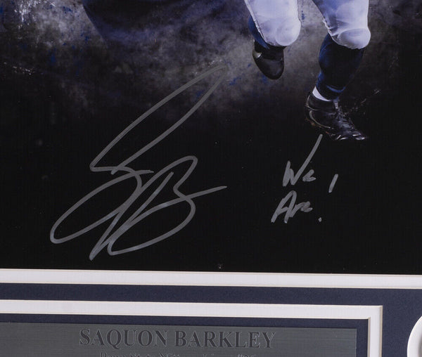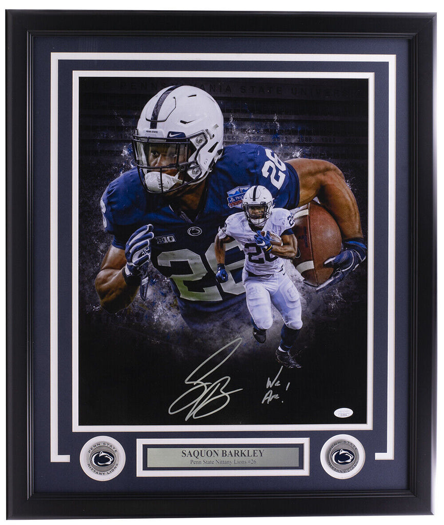 Featured is a Saquon Barkley signed framed 16x20 Penn State Nittany Lions collage photo. This photo was hand signed by Saquon Barkley and authenticated by JSA authentication services. Included with the photo is a JSA hologram and certificate of authentication. This photo has been professionally framed and matted and measures approximately 22x27.. SPECIFICATIONS Autographed By: Saquon Barkley Team: Penn State Nittany Lions Sport: Football Authentication: James Spence Authentication (JSA)