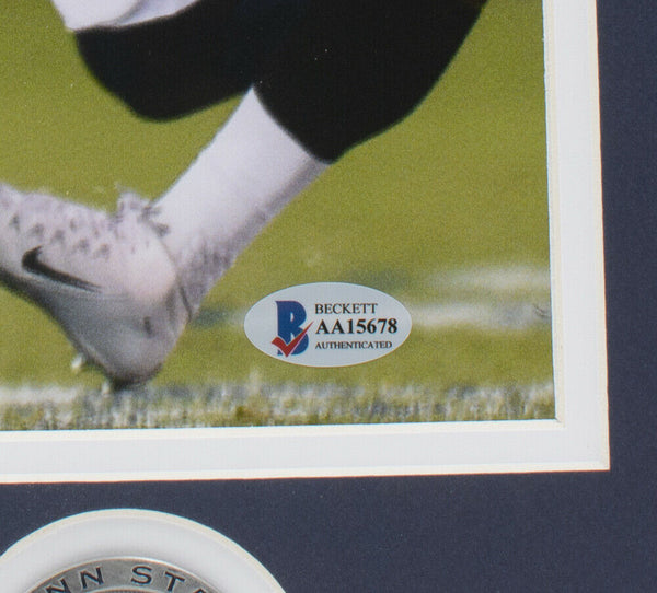 Featured is a Saquon Barkley signed framed 16x20 Penn State Nittany Lions photo. This photo was hand signed by Saquon Barkley and authenticated by Beckett authentication services. Included with the photo is a Beckett hologram and certificate of authentication. This photo has been professionally framed and matted and measures approximately 22x27. SPECIFICATIONS Autographed By: Saquon Barkley Team: Penn State Nittany Lions Sport: Football-NFL Authentication: Beckett Grading Services